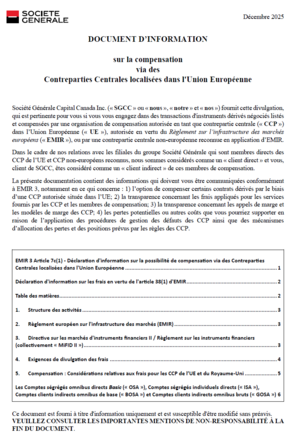 EMIR 3 Divulgation de la transparence des services de compensation